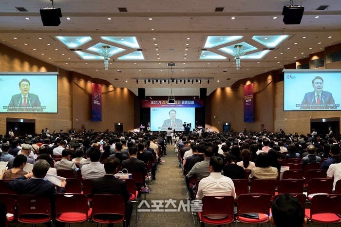 〔스포츠서울│수원=좌승훈기자〕제21기 민주평화통일자문회의 경기지역회의 출범대회가 6일 고양 킨텍스에서 김관용 민주평통 수석부의장, 석동현 사무처장, 홍승표 경기부의장, 이동환 고양특례시장, 시·군협의회장과 자문위원 1500명이 참석한 가운데 열렸다.