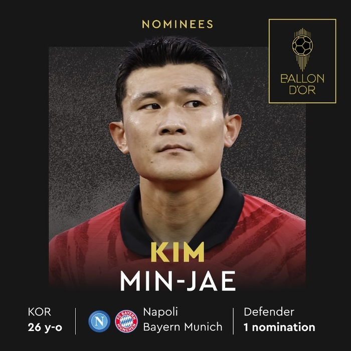 발롱도르를 주관하는 프랑스 축구전문매체 ‘프랑스 풋볼’은 7일(이하 한국시간) 2023년 발롱도르 후보 30인을 발표하면서 김민재를 포함했다.