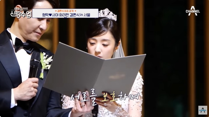 이어서 심형탁은 서약을 진행하며 “나 신랑 심형탁은 전생에 나라를 구했나 봅니다. 우주를 구했나 봅니다”라고 말해 반응을 이끌어냈다. 그는 “오늘 이렇게 현명하고 사랑스러운 사야를 아내로 맞이하게 됐습니다. 오늘 한국 결혼식에 마지막 눈물을 흘리고 가족을 위해서 강한 남편이 되겠습니다. 사야를, 가족을 지키겠습니다”라고 다짐했다.