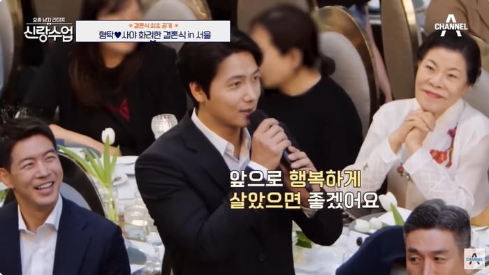 사회를 맡은 전현무는 “저는 신랑 심형탁 군의 동갑내기 친구”라고 인사했다. 하객으로는 배우 이동욱, 최수종-하희라 부부, 이상우, 이상윤, 오정세, 김지훈과 방송인 박수홍, 가수 션 등 스타들이 총출동해 눈길을 끌었다.