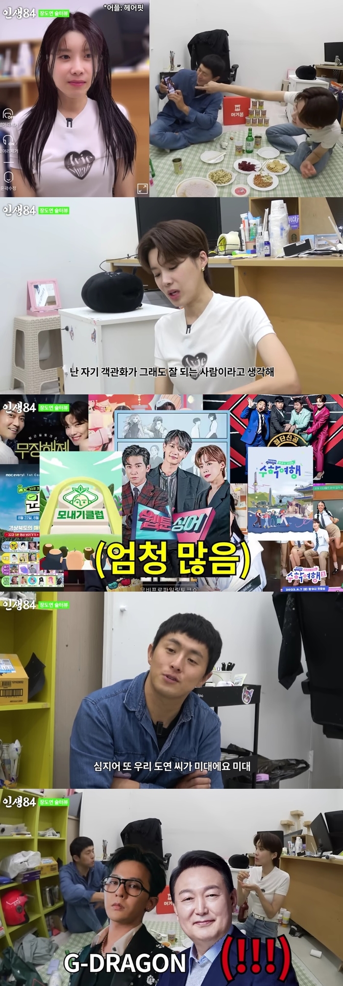 이야기는 다시 데뷔 이래 초지일관 숏커트를 유지 중인 장도연의 헤어스타일로 이어졌다. 장도연은 “나도 너무 헤어스타일이 똑같으니까 다른 걸 해보려고 해도 안 된다. 난 자기 객관화가 잘 되니까. 이러고 저러고 고민하니 결국 덱스 머리더라”라고 말해 웃음을 안겼다.