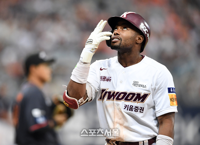 키움 히어로즈 도슨이 10일 고척스카이돔에서 열린 2023 KBO리그 한화 이글스와 경기 6회말 무사 2루 한화 투수 정우람을 상대로 1타점 적시타를 치고 세리머니를 하고 있다. 2023. 9. 10. 고척 | 박진업기자 upandup@sportsseoul.com
