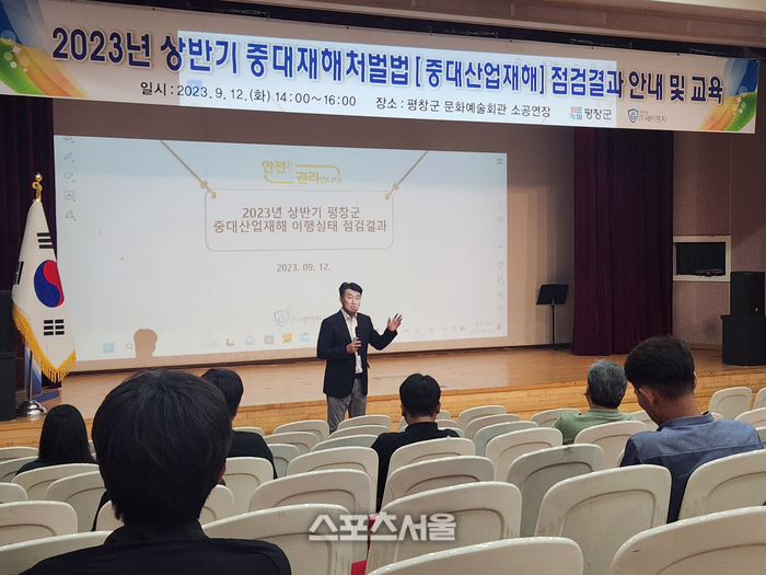 [스포츠서울ㅣ김기원 기자] 평창군은 9월 12일 평창군 문화예술회관에서 실무자 약 100명을 대상으로 상반기 중대산업재해 이행실태 점검결과에 따른 개선사항 교육을 실시했다.