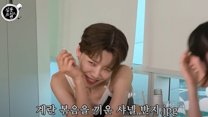 이어서 그는 “그런데 자꾸 반지를 빼서 부추 달걀 볶음 안에 넣는 거야. 저게 얼마짜리야.. 그래서 ‘언니로서 내가 정신 차려야겠다’ 하고 반지를 주머니에 챙겨왔지”라고 말했다.