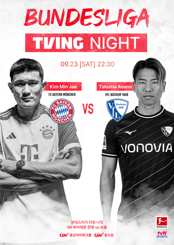 CGV는 TVING(티빙), CJ ENM tvN SPORTS와 함께 오는 23일 분데스리가 5R 바이에른 뮌헨과 VfL 보훔 경기를 생중계하는 ‘분데스리가 티빙 나잇’ 뷰잉파티를 진행한다.