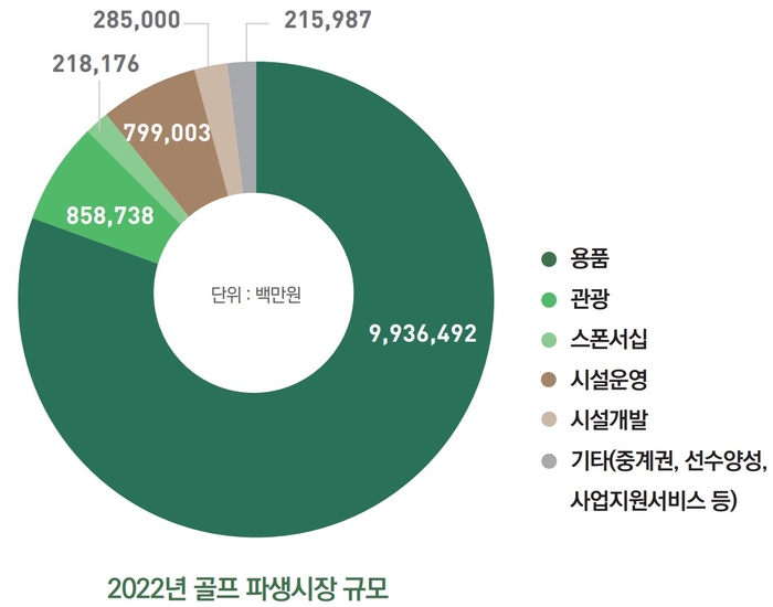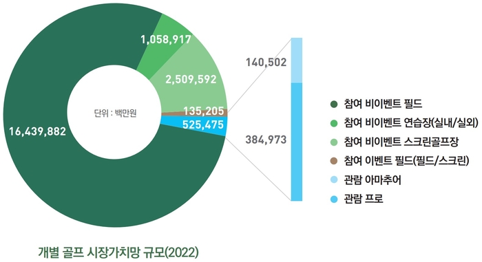 백서는 골프산업 전체 구조와 시장별 규모와 특성, 시사점 등을 여섯 개 장으로 구분했다. 지난해 국내 골프시장 규모는 총 20조6690억원으로 2020년(5조8540억원)의 4배가량 증가한 것으로 조사됐다.
