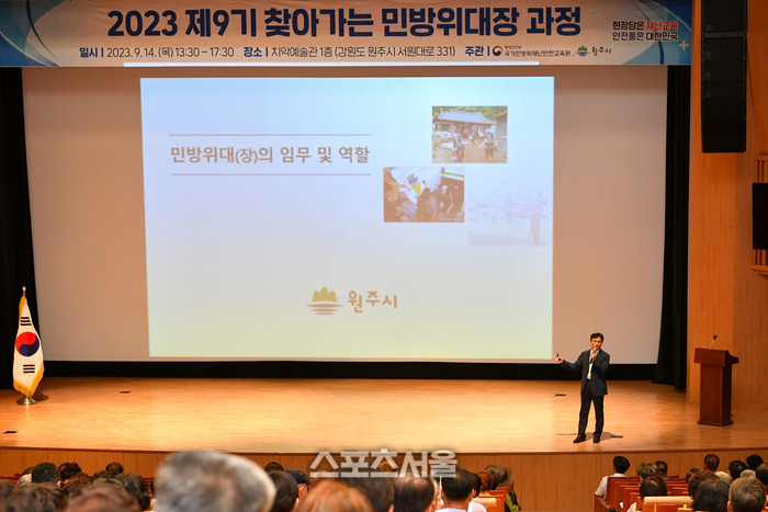 [스포츠서울ㅣ원주=김기원 기자] 원주시는 치악예술관에서 관내 69개 직장민방위대장과 25개 읍면동 595개 지역민방위대(통・리대)장 663명을 대상으로 ‘2023년 찾아가는 민방위대장 교육’을 실시했다.
