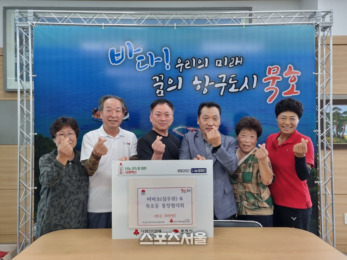 [스포츠서울ㅣ김기원 기자] 지난 8월 25일 동해시 묵호동에서 비비소식당을 운영하는 심우원 대표와 묵호동통장협의회(회장 김근배) 소속 통장들이 십시일반 모아 묵호동지역사회보장협의체 복지사업에 현금 30만원을 지정기탁하였다.