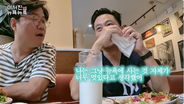 이서진은 “(이방인한테도 평등하다고 느끼기보다는) 그냥 뉴욕에 사는 것 자체가 너무 멋있다고 생각했다”라고 답했다. 그 말에 나 PD는 “‘뉴욕뽕’”이라며 웃었다.