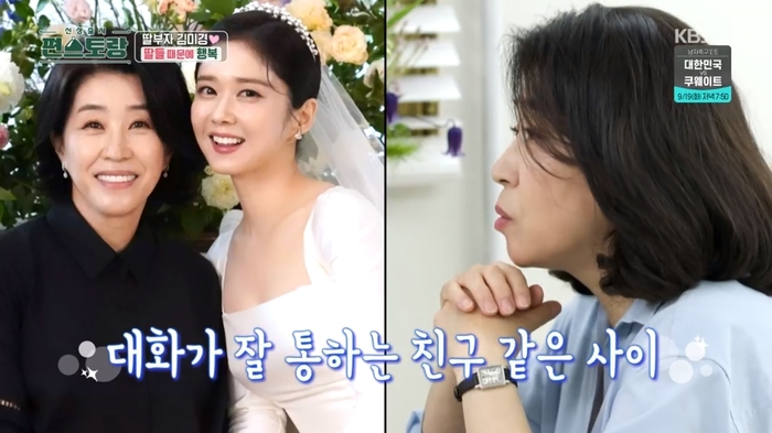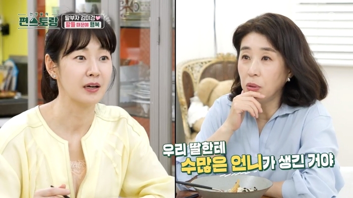 김미경은 “아까 낮에 박신혜를 우연히 만났다. ‘상속자들’에서 함께 했는데 그때부터 엄마와 딸이다. 신혜가 ‘엄마’라고 부르더라”라고 밝혔다.