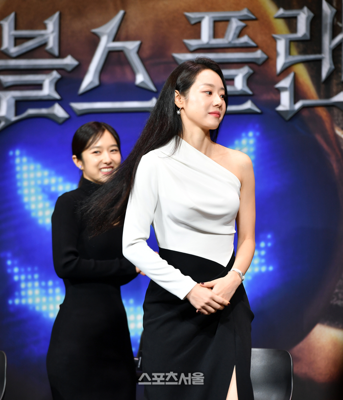 S대 경영학과 출신 배우이시원이 넷플릭스 두뇌서바이벌 예능 ‘데블스 플랜’ 제작발표회 무대에 올라 포토타임을 갖고 있다.
