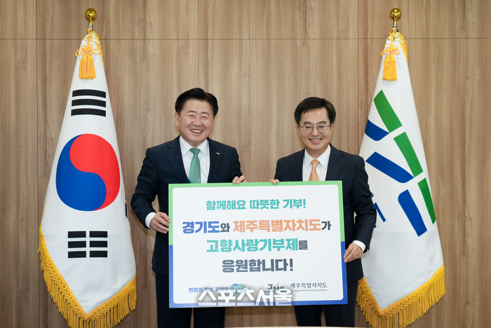 협약식에 앞서 오영훈 제주도지사와 김동연 경기도지사는 상호 지역에 고향사랑기부를 하고, 고향사랑기부제가 정착돼 지방재정에 기여할 수 있도록 함께 노력하기로 했다.