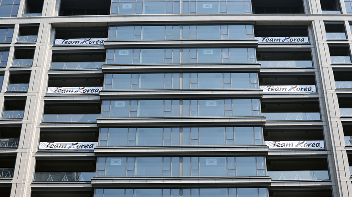 한국 선수단 외에도 각국의 선수들은 숙소에 개성을 표현했다. 중국, 말레이시아, 홍콩 등 저마다 국기를 걸어놨다. 특히 한국 선수단 건물에는 국기 외에도 ‘Team Korea’라는 문구를 적어 선수단이 하나 됨을 강조했다.