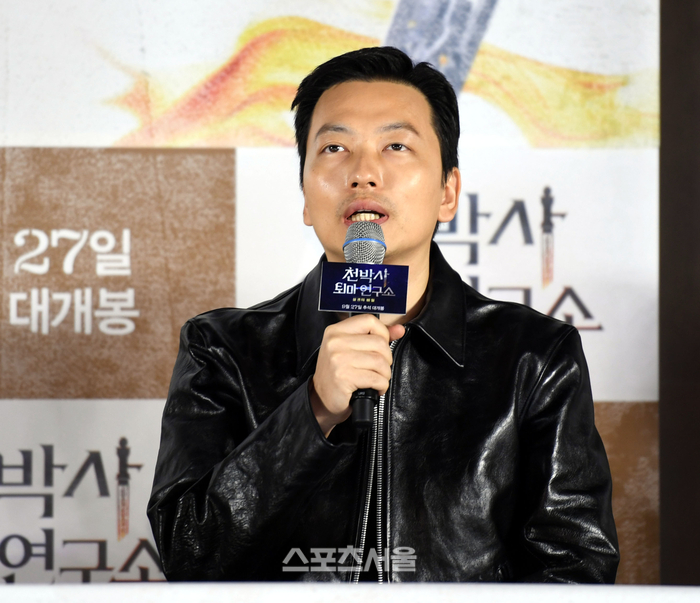 이동휘가 19일 서울 CGV 용산아이파크몰에서 열린 영화 ‘천박사 퇴마 연구소: 설경의 비밀’ 언론시사회에서 질문에 답변하고 있다. '천박사 퇴마 연구소: 설경의 비밀' 은 귀신을 믿지 않지만 귀신 같은 통찰력을 지닌 가짜 퇴마사 '천박사'(강동원)가 지금껏 경험해본 적 없는 강력한 사건을 의뢰받으며 시작되는 이야기를 그린 영화로 오는 27일 개봉 예정이다. 2023. 9. 19. 최승섭기자 thunder@sportsseoul.com