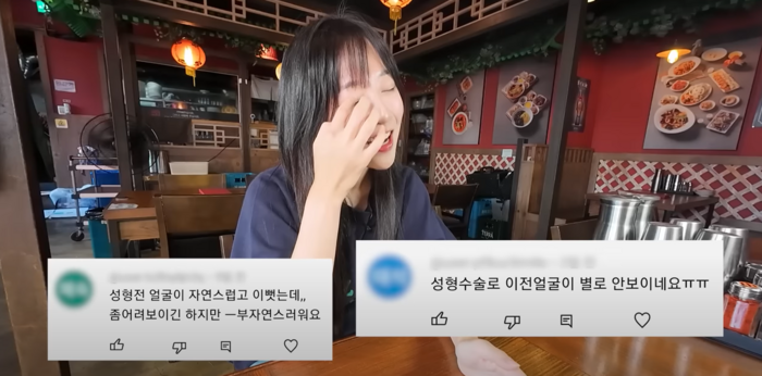 식당에 도착한 쯔양은 “그때는 얼굴 빵빵하고 귀여웠는데”라며 4년 전 첫 도전 당시를 회상했고 이에 PD는 “얼굴 바뀌었다는 얘기가 많지?”라며 성형 논란을 언급했다.