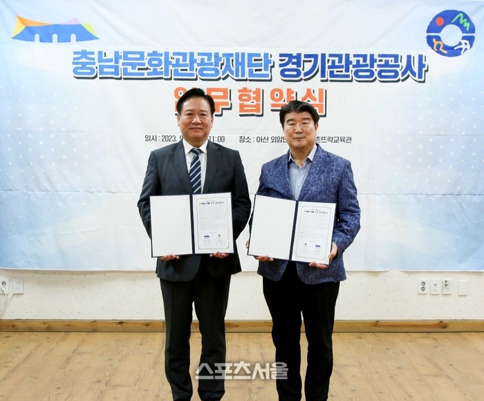 조원용 사장, 서흥식 대표이사 등 양측 주요 관계자들이 참석한 가운데 맺은 협약에는 경기도와 충남을 연계하는 관광콘텐츠 및 관광상품을 개발하고, ‘2024~25 충남방문의 해’와 연계한 양 지역 간의 공동협력 모델 구축 등의 내용이 담겼다.