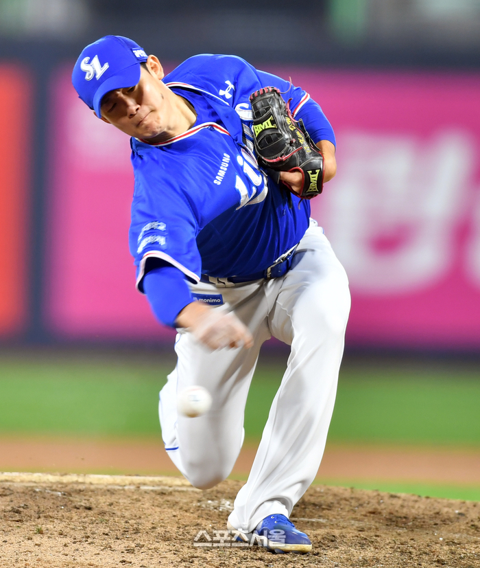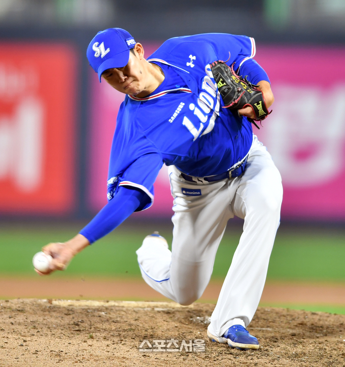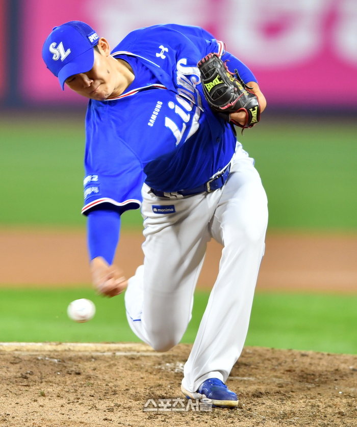 삼성 잠수함투수 김대우가 19일 수원KT위즈파크에서 열린 2023프로야구 KT위즈와 삼성라이온즈의 경기 6회말 등판해 무실점피칭을 펼치고 있다.