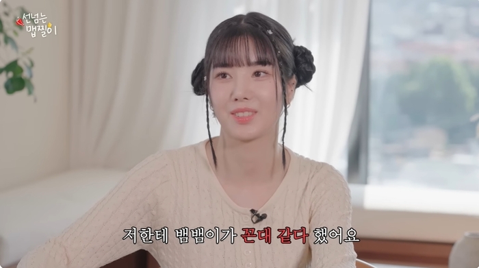 권은비가 “‘선넘는 맵찔이’ 본 적 있나”라고 묻자, 뱀뱀은 “덱스님 편 봤다”라고 답했다. 그 말에 권은비는 시선을 회피했다.