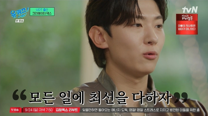이어서 “그 상황에서 군대를 가야 했다. 동료 강사님이 UDT 출신이더라. 그래서 목표를 UDT로 잡고 도전했다. 그게 내 인생의 유일한 돌파구가 될 수 있을 것 같았다”라고 털어놨다.