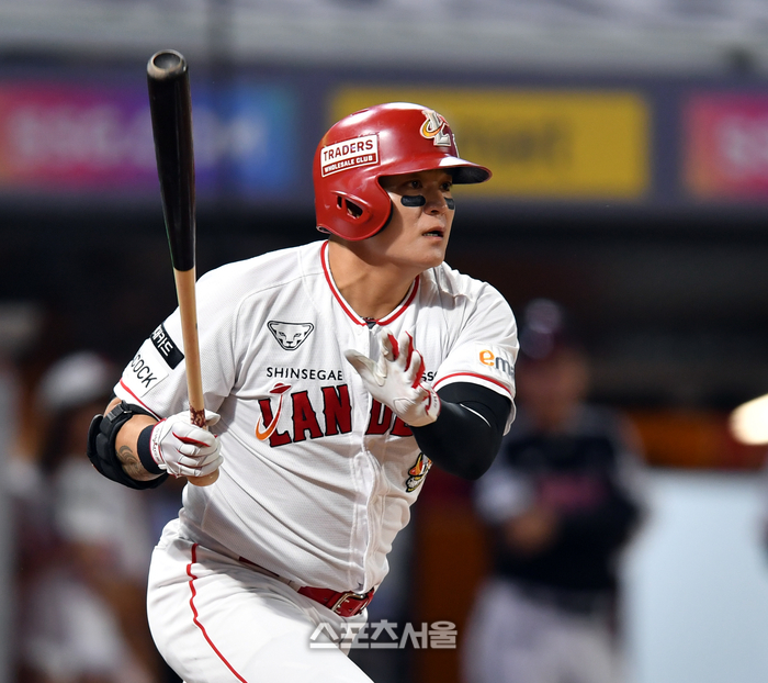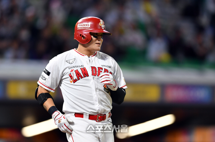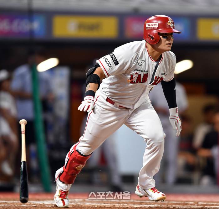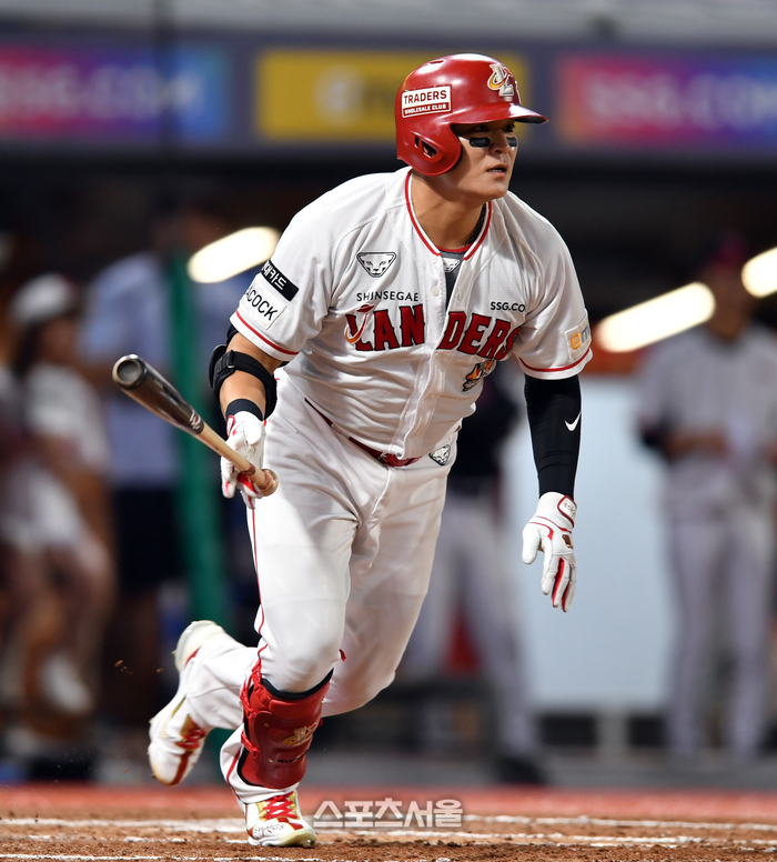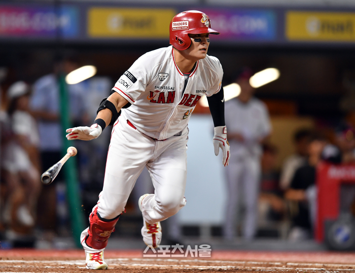 SSG 1번타자 추신수가 21일 인천SSG랜더스필드에서 열린 2023프로야구 SSG랜더스와 LG트윈스의 경기 6회말 선두타자로 나와 잘맞은 타구를 날렸지만 수비시프트에 걸리자 아쉬워하고 있다.. 2023.09.21.
