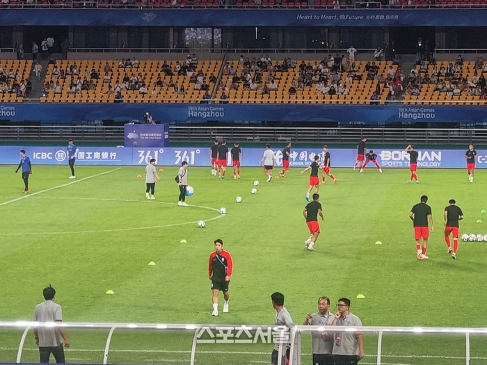 황 감독은 1차전과 비교해 5명의 선발 명단을 바꾼 가운데, 이날 관심은 이강인이 벤치에 앉느냐 여부였다. 이강인은 현지시간으로 이날 오후 1시45분 항저우 공항에 도착했다. “좋은 결과를 낼 수 있도록 하겠다”라면서도 몸상태를 묻는 질문에는 “비밀”이라고 짧게 말했다.