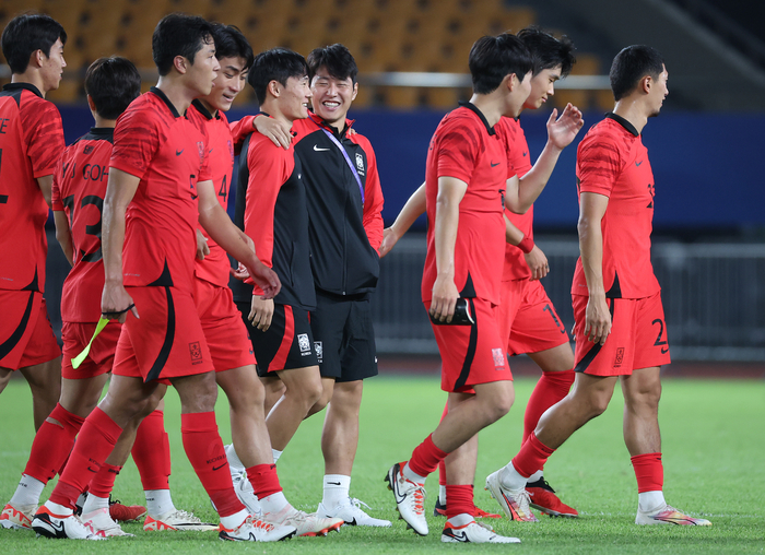 2경기 연속 대승이다. 다만 황 감독은 1차전 쿠웨이트(9-0 승)전이 끝난 뒤 대승을 경계한 바 있다. 황 감독은 “토너먼트에 오른 건 축하할 일이지만 금메달 따기 전까지는 만족할 수 없다. 3차전에 경기력 유지를 해야 한다. 후반에 느슨해진 부분이 있다. 90분 내내 긴장감을 갖고 플레이 해야 한다는 것을 강조하고 싶다”라고 말했다.