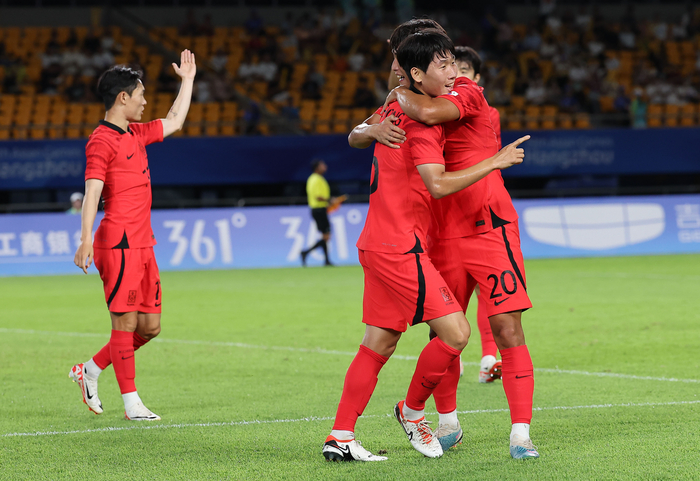 홍현석은 21일 중국 저장성 진화 스포츠센터에서 열린 2022 항저우 아시안게임 조별리그 E조 2차전 태국전이 끝난 뒤 취재진과 만났다. 이강인은 21일 선수단에 합류했다. 태국전에는 뛰지 않고 관중석에서 경기를 지켜봤다. 홍현석은 “강인이한테 (공을) 주면 알아서 하지 않을까요”라고 농담하면서 “3차전에 강인이가 뛸지 안 뛸지 모르지만 뛴다면 잘 맞춰봐야 할 것 같다”라고 강조했다.