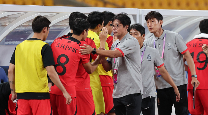 이후 경기가 시작되자 이강인은 관중석에서 관계자들과 관전했다. 팬들의 연호에 손을 흔들고 웃어주는 팬 서비스도 했다. 다만 황 감독은 이강인의 향후 출전에 대해선 말을 아꼈다. 대표팀은 오는 24일 바레인과 조별리그 최종전을 앞뒀다.