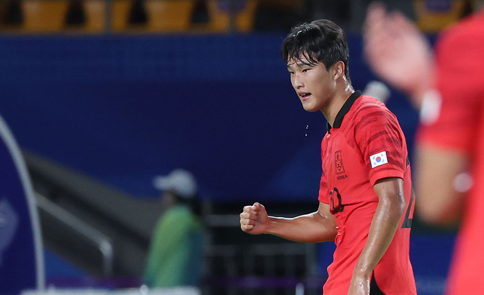 그럼에도 황 감독은 1~2선의 유기적인 움직임과 무한 스위칭으로 공격력을 극대화해냈다. 2경기에서 13골을 뽑아냈는데, 8명이 골 맛을 봤다. 홍현석(KAA헨트), 백승호(전북 현대), 이재익(서울 이랜드)을 제외하면 모두 1~2선 자원이다. 그만큼 다양한 득점 루트를 보여줬다. 박재용과 안재준도 이르게 득점포를 가동했다.