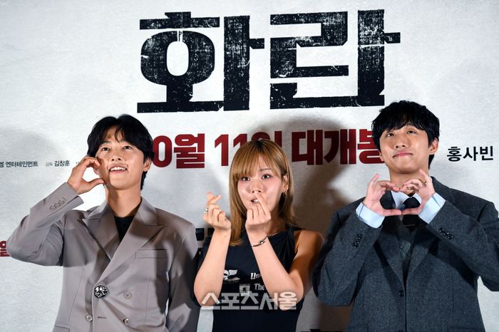 송중기, 김형서(비비), 홍사빈(왼쪽부터)이 22일 서울 강남구 메가박스 코엑스에서 열린 영화 ‘화란’ 언론시사회에서 포토타임을 갖고 있다. 2023. 9. 22. 최승섭기자 thunder@sportsseoul.com