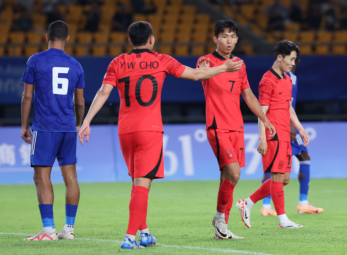 22일 중국 저장성 진화 스포츠센터 보조경기장. 황선홍 감독이 이끄는 아시안게임 남자 축구대표팀이 2022 항저우 아시안게임 조별리그 2차전 태국을 4-0으로 꺾고 16강 진출을 확정한 다음 날.
