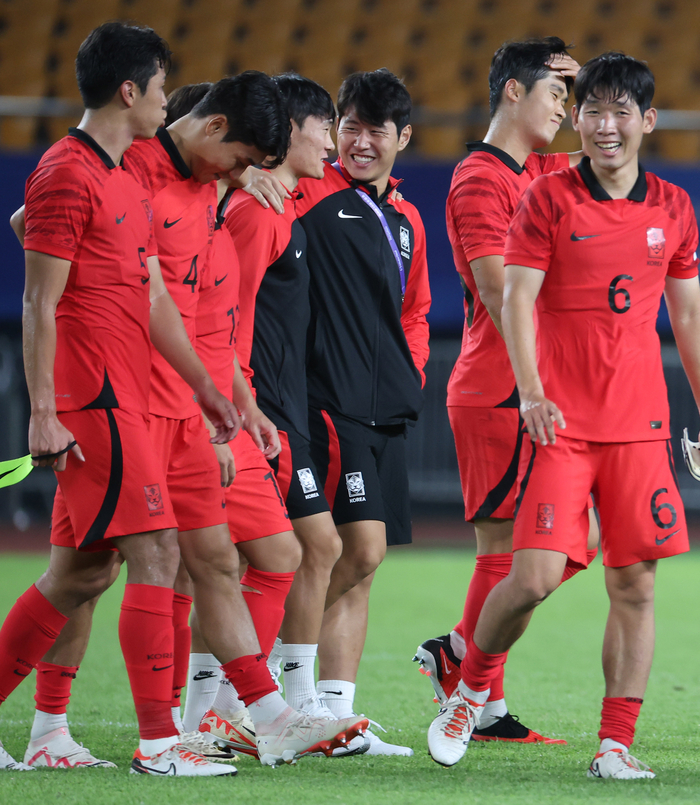 아시안게임은 국제축구연맹(FIFA) 주관 대회가 아니라 소속팀 허락이 있어야 차출된다. 이강인은 파리생제르맹과 줄다리기 끝에 지각 합류하게 된 것이다. 더욱이 그는 햄스트링 부상에서 회복한 지 얼마 되지 않았다. 이강인은 지난 20일 유럽축구연맹(UEFA) 챔피언스리그 도르트문트(독일)전에서 10여분가량을 뛴 뒤 곧장 중국으로 넘어왔다.