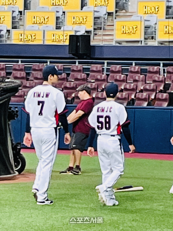 그러나 대회 종료 때까지 두 사람이 시종일관 붙어다닐 수는 없는 법. 김지찬은 “이번 기회에 대표팀 선수들이랑 정말 다 친해지고 싶다”라고 강조했다. 김주원도 “이렇게 모인 김에 형들이랑 친해질 것”이라고 힘줘 말했다. 그러나 김주원은 “그래도 (김)지찬이 형이랑 붙어 있으려 한다”고 한 마디 더 했다.