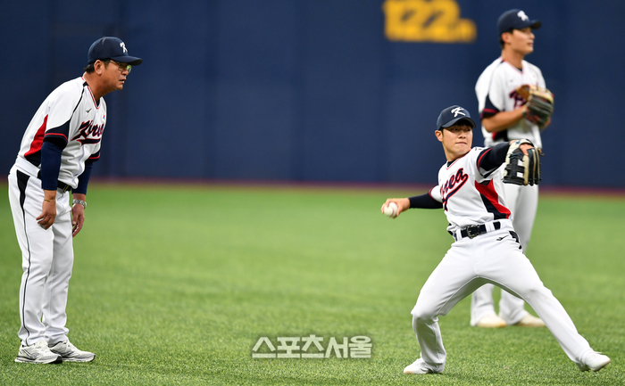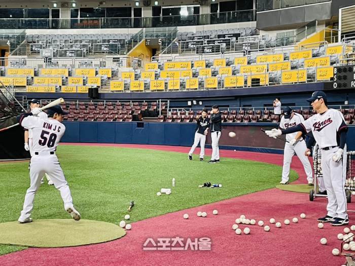 오후 3시 30분 고척돔에 도착한 이들은 단체사진을 촬영한 뒤, 본격적인 훈련에 임했다. 김지찬이 기민한 움직임을 선보이자, 코칭스태프들이 흡족한 표정으로 박수를 보내기도 했다. 김지찬도 쑥스러운 미소로 화답했다.