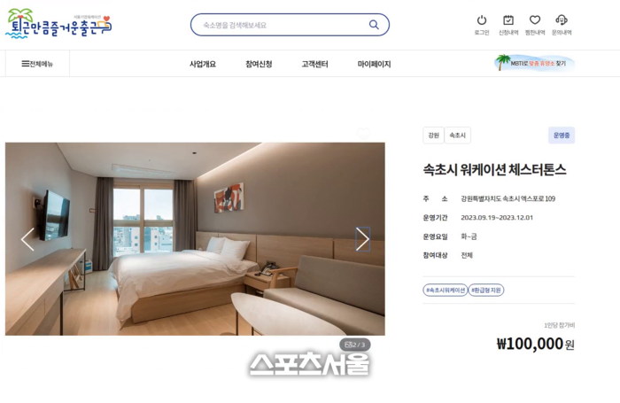 [스포츠서울ㅣ김기원 기자] 속초시가 오는 10월부터 연말까지 재단법인 서울경제진흥원과 함께 주중 3박 4일의 속초 워케이션 프로그램을 200명 참가 목표로 운영할 예정이라고 밝혔다.