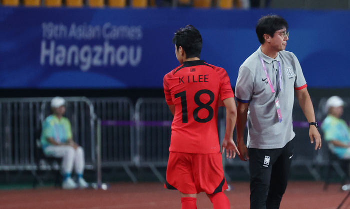 황선홍 감독이 이끄는 아시안게임 남자 축구대표팀은 24일 중국 저장성 진화 스포츠센터에서 열린 2022 항저우 아시안게임 조별리그 E조 3차전에서 바레인을 상대로 전반을 0-0으로 마쳤다.