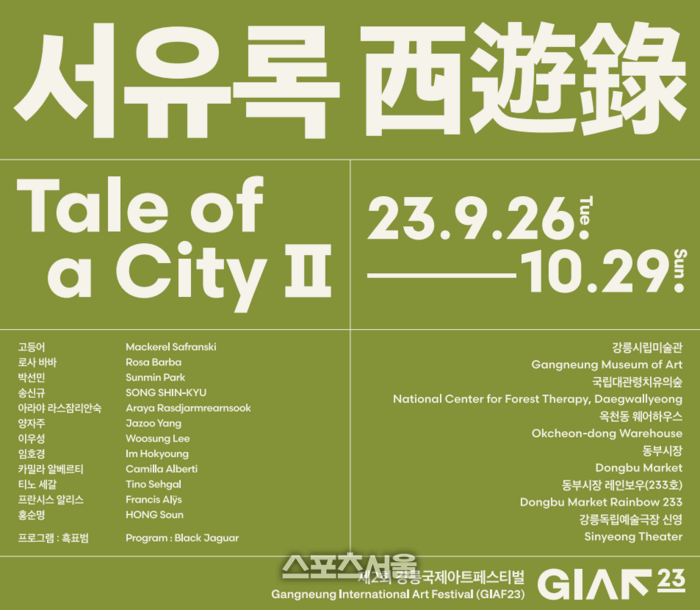 [스포츠서울ㅣ김기원기자] 강릉시립미술관은 오는 26일(화)부터 10월 29일(일)까지 (재)파마리서치문화재단과 공동으로 주관·기획한 ‘제2회 강릉국제아트페스티벌(Gangneung International Art Festival: GIAF23)’《서유록》기획전시를 개최한다. ※ 공동 주관·기획은 시립미술관 전시에 한함