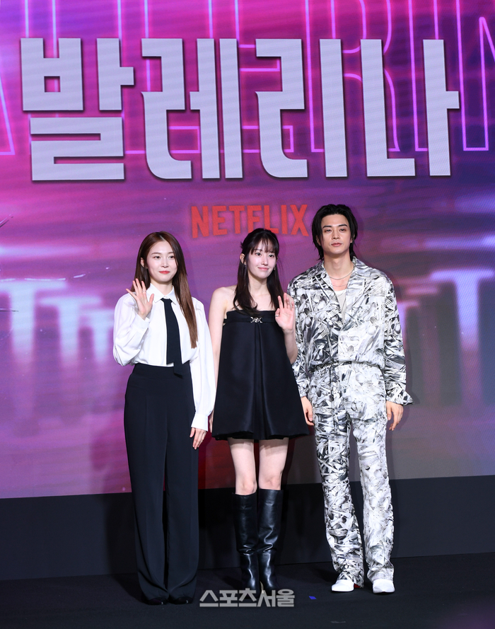 배우 박유림(왼쪽)과 전종서(가운데), 김지훈이 25일 서울 마포구 호텔 나루 서울 엠갤러리에서 진행된 넷플릭스 영화 '발레리나' 제작보고회에서 취재진을 향해 포즈를 취하고 있다. '발레리나'는 경호원 출신 ‘옥주’가 소중한 친구 ‘민희’를 죽음으로 몰아간 ‘최프로’를 쫓으며 펼치는 감성 액션 복수극으로 전종서, 김지훈, 박유림 등이 출연하며 이충현 감독이 연출을 맡았다. 2023. 9. 25. 박진업기자 upandup@sportsseoul.com