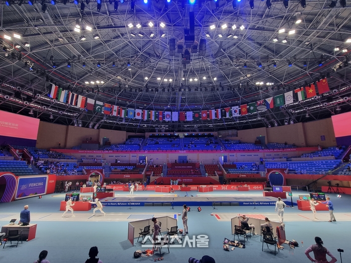 25일 전자대학 체육관에서 열린 2022 항저우 아시안게임 여자 플러뢰 8강에서 홍효진은 탈락, 홍세나는 4강 진출에 성공했다.