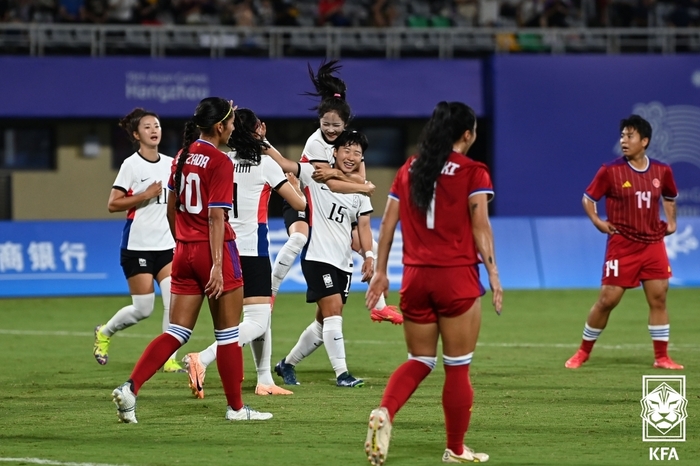 [스포츠서울 | 김용일기자] 손화연이 해트트릭을 달성한 한국 여자 축구가 2022 항저우 아시안게임 조별리그에서 2연승을 달리며 8강행을 확정했다.