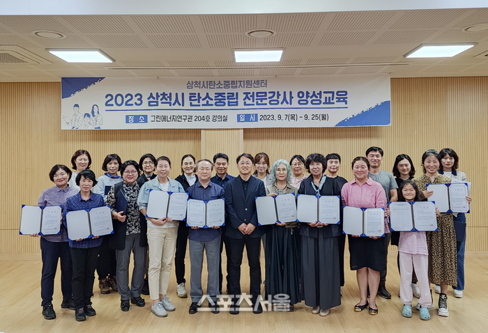 [스포츠서울ㅣ김기원 기자] 강원대학교 삼척시탄소중립지원센터(센터장 김주영)는 지난 9월 25일 강원대학교 삼척캠퍼스 그린에너지연구관에서 ‘2023 삼척시 탄소중립 전문강사 양성교육 기본과정 수료식’을 가졌다.
