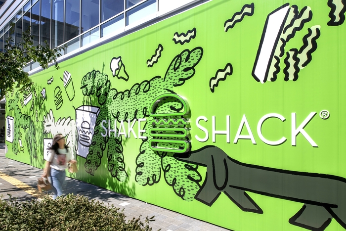 SPC는 10월 오픈에 앞서 공사 시작부터 오픈 전까지 설치되는 호딩 아트(Hoarding Art, 공사장 주위의 임시 가림막에 그리는 작품)를 선보인다고 설명했다. 쉐이크쉑은 매장 오픈 시마다 호딩 아트를 통해 지역 커뮤니티와 소통해왔다.