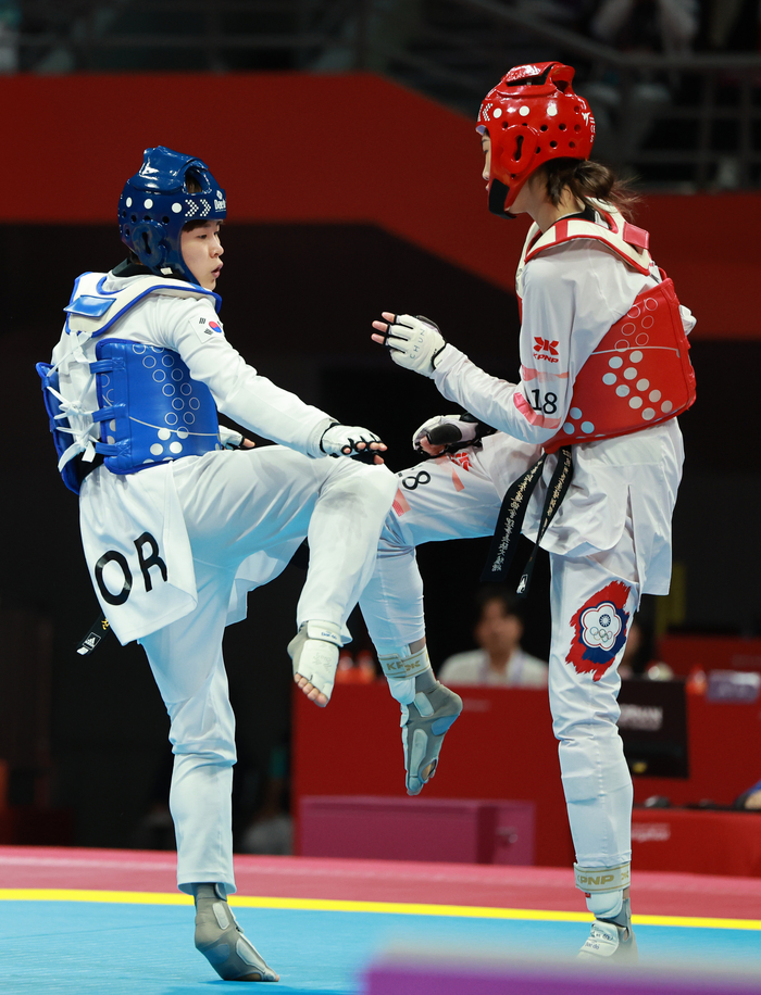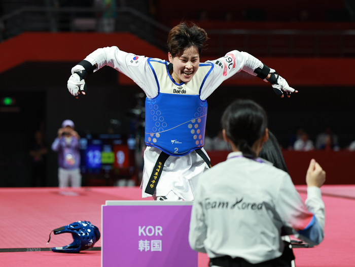 [스포츠서울 | 항저우=김동영기자] 여자 태권도 대표팀 박혜진(26·고양시청)이 53㎏급에서 금메달을 따냈다. 국제대회에서 약한 모습을 보였던 박혜진이지만, 항저우에서는 달랐다. 첫 번째 금메달이다.
