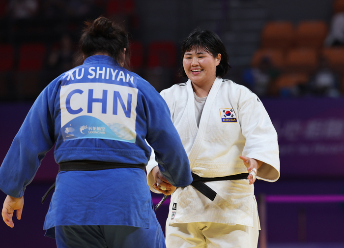 사실 김하윤은 부상을 안고 뛰었다. 중국으로 출국하기 1주일 전 거는 다리를 다친 것. 김하윤은 “중국에 올 때까지 유도를 하지 못했다. 여기서 테이핑하고 재활했다. 특기가 안다리인데 거는 다리를 다쳤다”라고 담담하게 말한 뒤 “시합에 들어가면 (통증이) 무뎌진다. 다친 게 아닌 것처럼 경기했다”라고 설명했다.