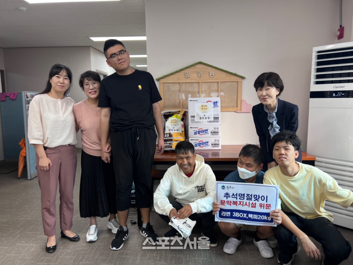 [스포츠서울ㅣ원주=김기원기자] 원주시 문막읍행정복지센터, 문막읍지역사회보장협의체(민간위원장 이상길)는 지난 25일 어울림발달장애인주간활동제공기관, 노픈누리지역아동센터, 원주외국인주민지원센터와 관내 복지시설을 방문해 추석맞이 위문품을 전달하였다.