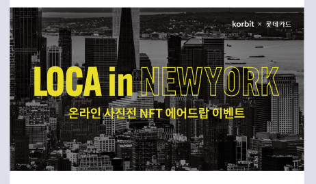 [스포츠서울 | 홍성효기자] 가상자산 거래소 코빗이 롯데카드와 협업해 ‘로카 인 뉴욕(LOCA in NEWYORK) : 뉴욕을 걷다’ 온라인 사진전을 개최하면서 NFT 에어드롭 이벤트를 진행한다고 27일 밝혔다.