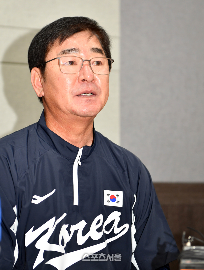 류중일 야구대표팀 감독이 27일 고척스카이돔에서 열린 훈련에 앞서 기자회견을 하고 있다.