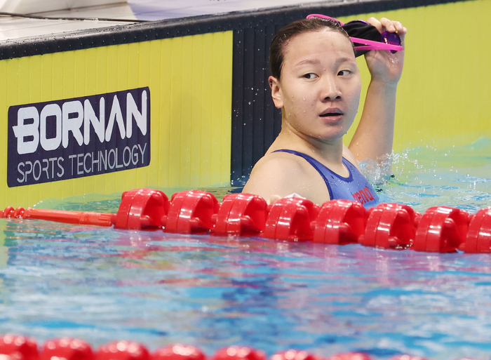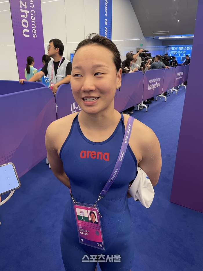 마지막 50m에서 뒤집었다고 하자 “저 순위권 밖에 있었나요? 진짜로?”라며 놀란 표정을 지었다. 그리고는 “그래도 믿고 봐주셔야죠”라며 깔깔 웃었다. 무서운 수영 실력을 보여줬지만, 영락없는 여고생이었다.