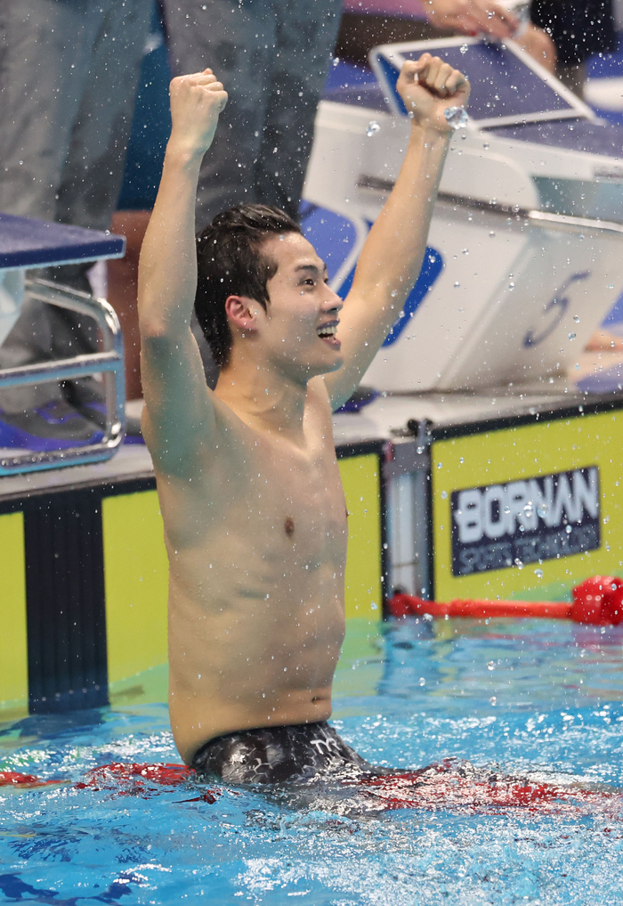 또한 황선우는 박태환 이후 13년 만에 수영에서 ‘다관왕’에 성공했다. 박태환은 2006 도하 대회와 2010 광저우 대회에서 각각 3관왕을 차지했다. 황선우가 뒤를 이었다. 이호준도 동메달을 땄다. 1분45초56을 기록하며 3위에 자리했다.