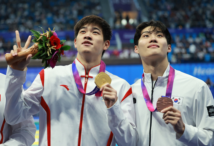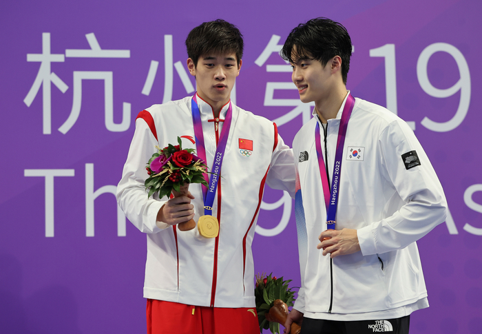 황선우는 “판잔러가 중국에서 슈퍼스타 아닌가. 자신의 홈에서 자유형 200m 레이스를 마친 뒤 내 손을 들어줬다. 많은 팬들의 함성을 들었다. 굉장히 기분 좋았다”며 웃었다.
